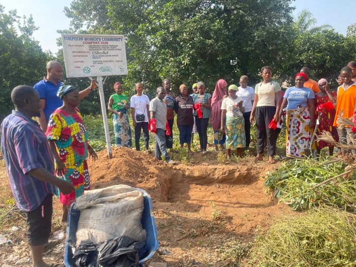 CSDevNet programme officer, Paul Joseph, highlighted the value of embracing locally driven methods of organic waste management, stressing that such practices not only boost crop productivity but also safeguard the community’s biodiversity. He encouraged the women and youth in attendance to take ownership of the initiative, acting as its custodians and champions within Tukpechi.