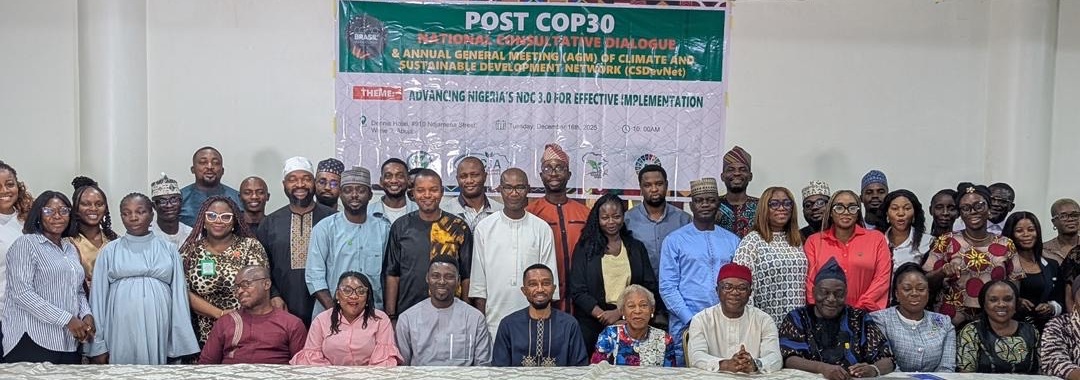 The Climate and Sustainable Development Network (CSDevNet) successfully convened a Post-COP30 National Dialogue on Advancing Nigeria’s Nationally Determined Contribution (NDC) 3.0, alongside its Annual General Meeting (AGM) in Abuja.